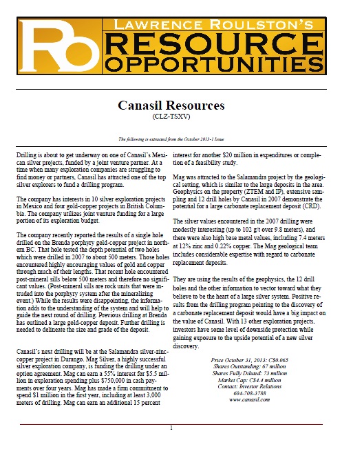 March 2013 – SIS Toronto 13': Canasil Resources Gold & Silver in Mexico & Canada
